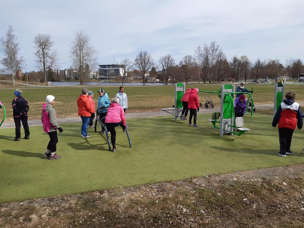 Reipaalla noin 25 jäsenen ryhmällä otimme tuntumaa Kalssun kuntolaitetarjontaan jumppa-Sinikan opastuksella.