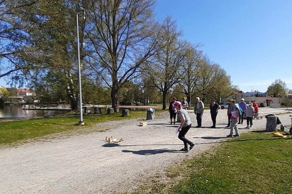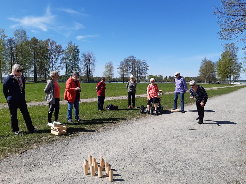 Iloisella joukolla pelasimme myös mölkkyä ja betangueta, tuulisessa ja kylmässä säässä 17.5. ja kesäisen aurinkoisella ja tyynellä säällä 24.5.