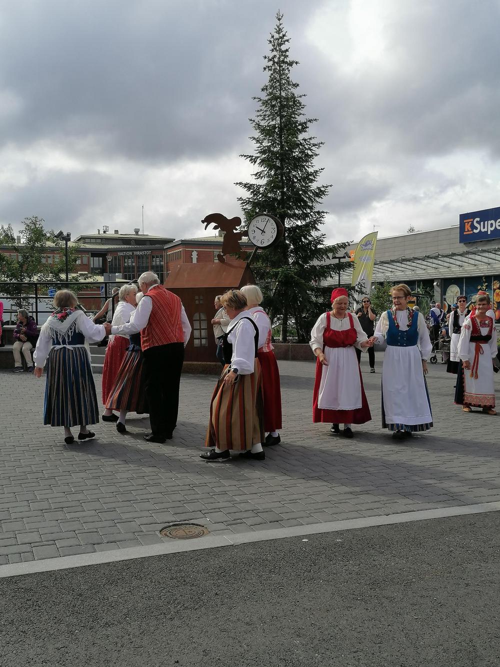 Kansallispukujen tuuletusta Vammalan torilla 2017